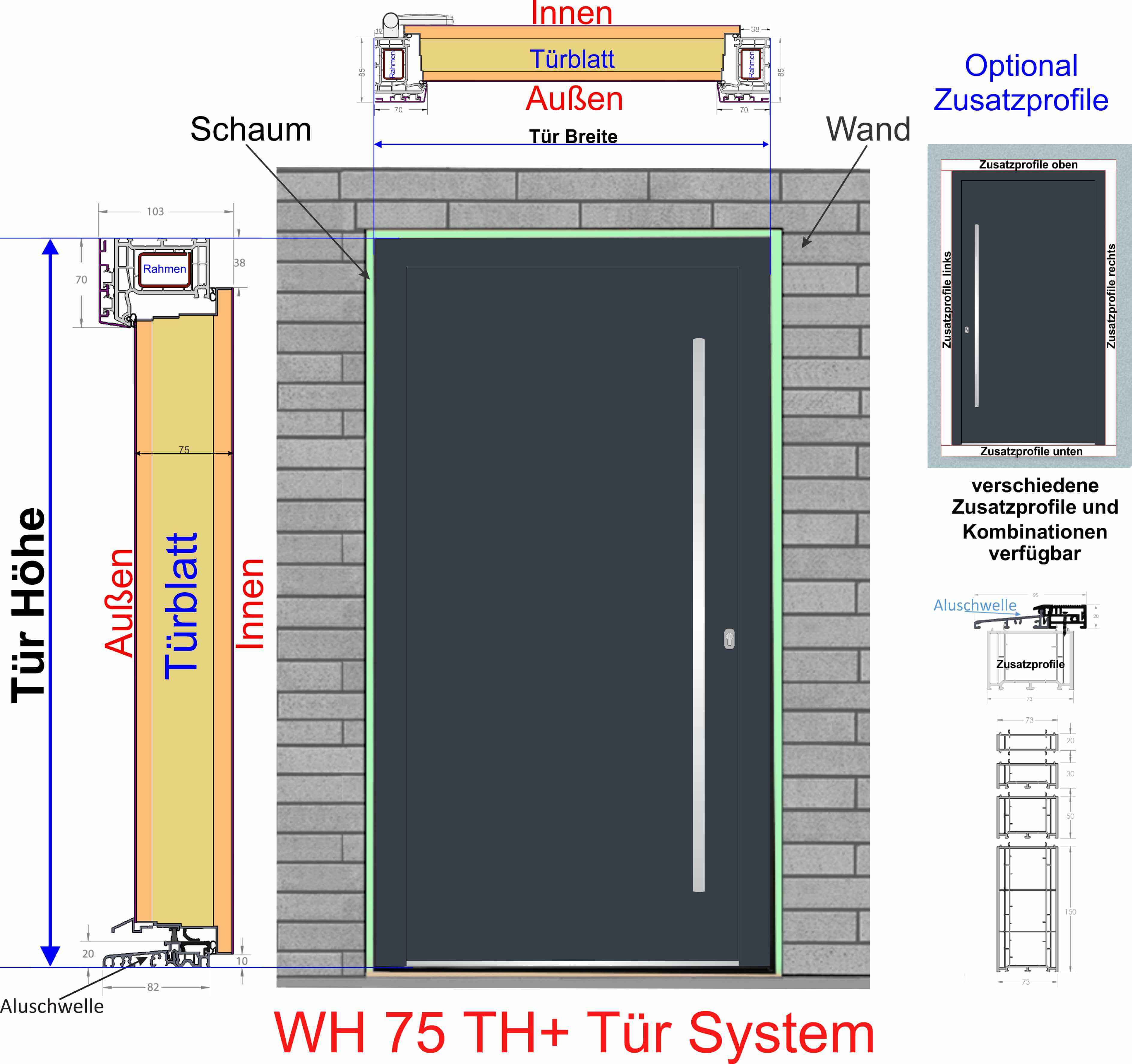 WH75 sind unsere Standard-Türen, entstanden aus einer Kombination von Aluminium und Kunststoff mit einer Gesamtbautiefe von 101 mm (bei WH 75 TH+ Gesamttiefe von 103 mm).