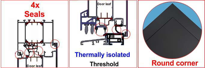 Flush door ALU95 FB system is 100% aluminum with 4 seals.