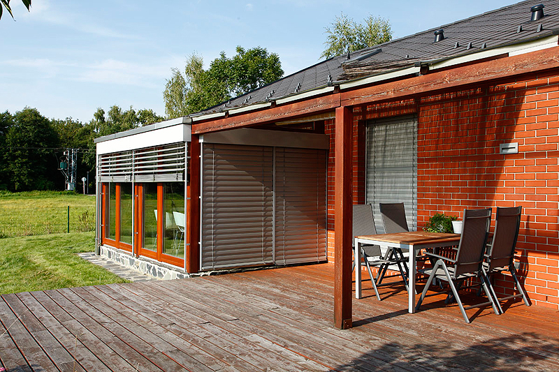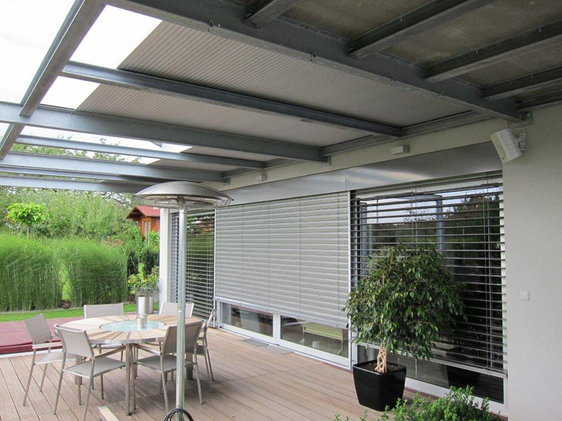 Aus der Sicht der Licht- und Wärmebedingungen sowie der Energieersparung ist die Außenbeschattungstechnik ein wichtiger Bestandteil des Bauwerkes. Aus herkömmlicher Sicht erfüllen die Außenjalousien eine Beschattungs- und Sicherheitsfunktion, unter nichttraditionellem Aspekt bilden sie ein interessantes architektonisches Bauelement bei Verwaltungsgebäuden und werden als Zierelement von Familienhäusern angesehen.